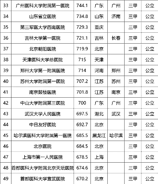 “100強(qiáng)”榜單中,入圍最多的三個(gè)省市分別是北京(16家醫(yī)院)、上海(13家醫(yī)院)、廣東(9家)。“100強(qiáng)”共覆蓋32個(gè)城市,包括4個(gè)直轄市(36家醫(yī)院)、23個(gè)省會(huì)城市(59家醫(yī)院)、5個(gè)地級(jí)市(5家醫(yī)院)??傮w看,城市的醫(yī)院平均得分和上榜機(jī)構(gòu)數(shù)有一定的相關(guān)性,上榜機(jī)構(gòu)數(shù)多的城市一般得分均值較高,說(shuō)明這些城市醫(yī)院整體實(shí)力較高。